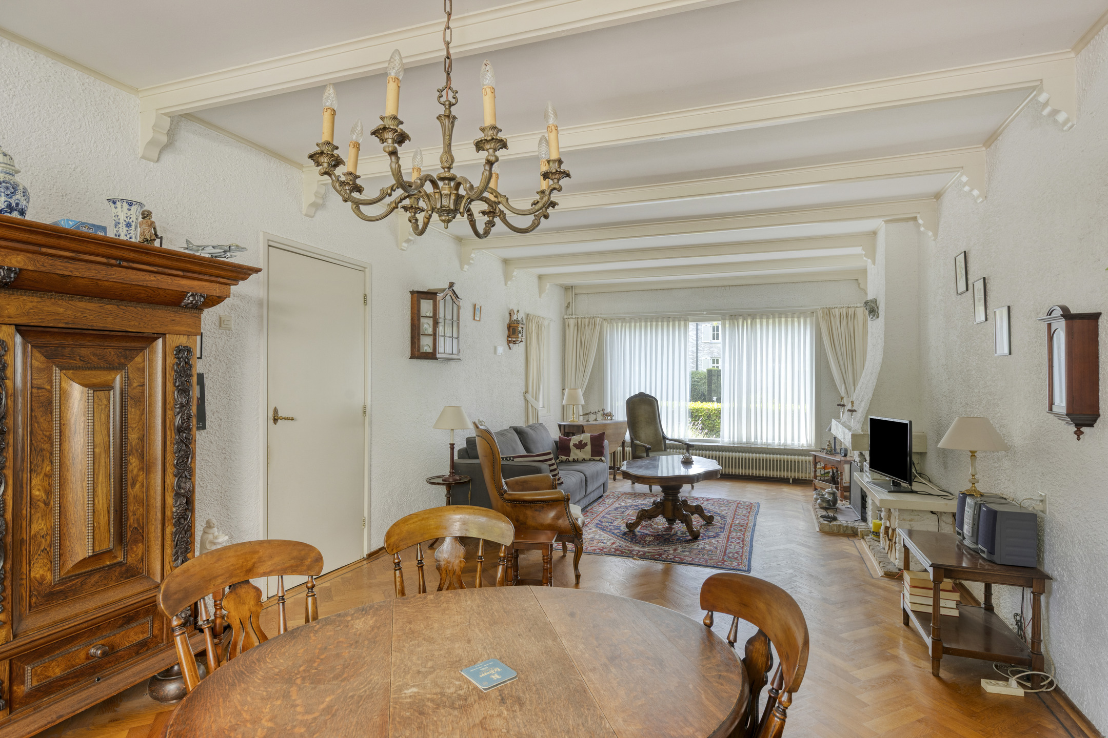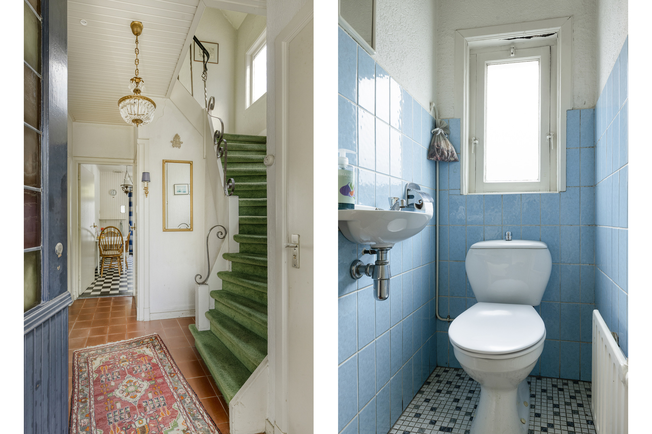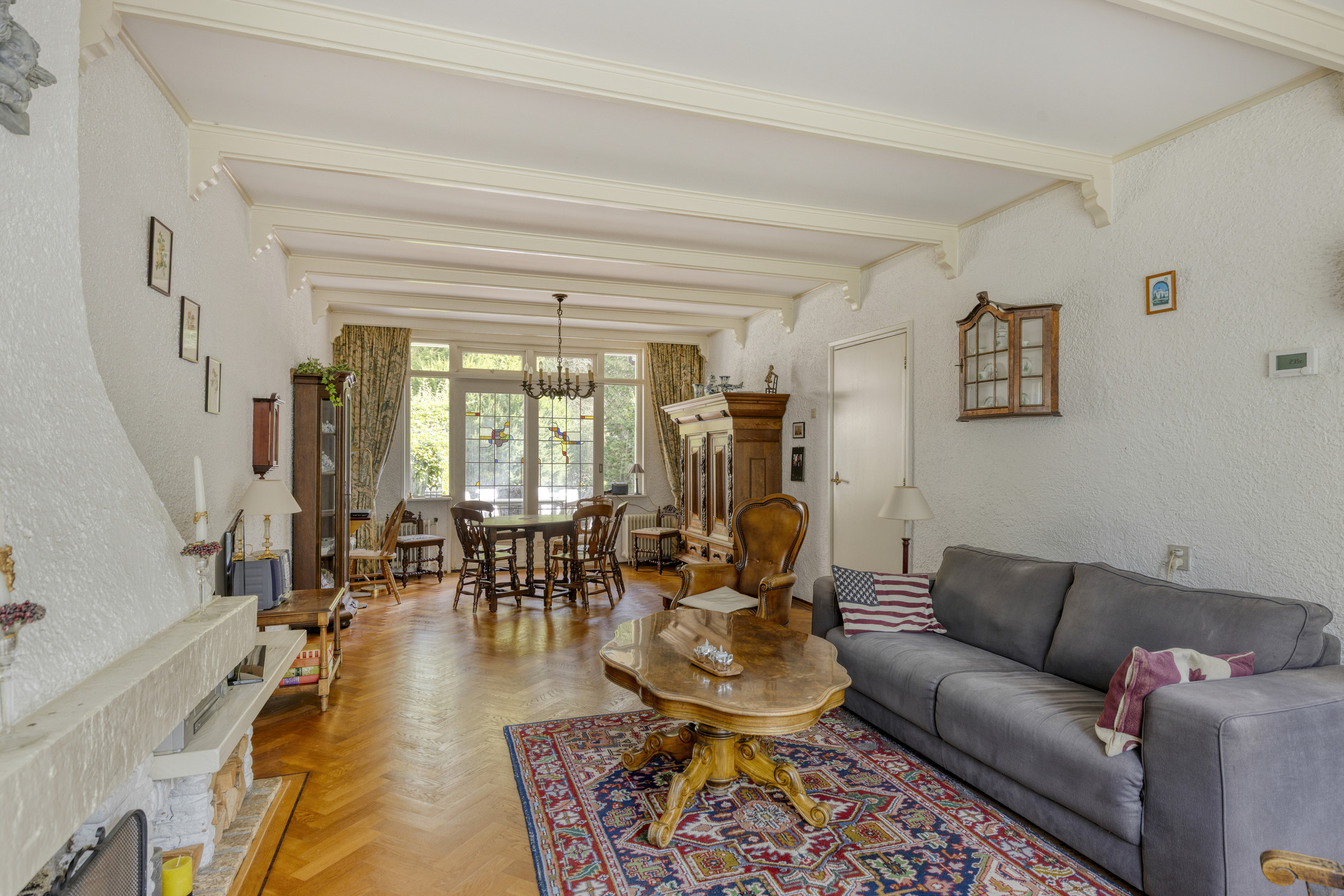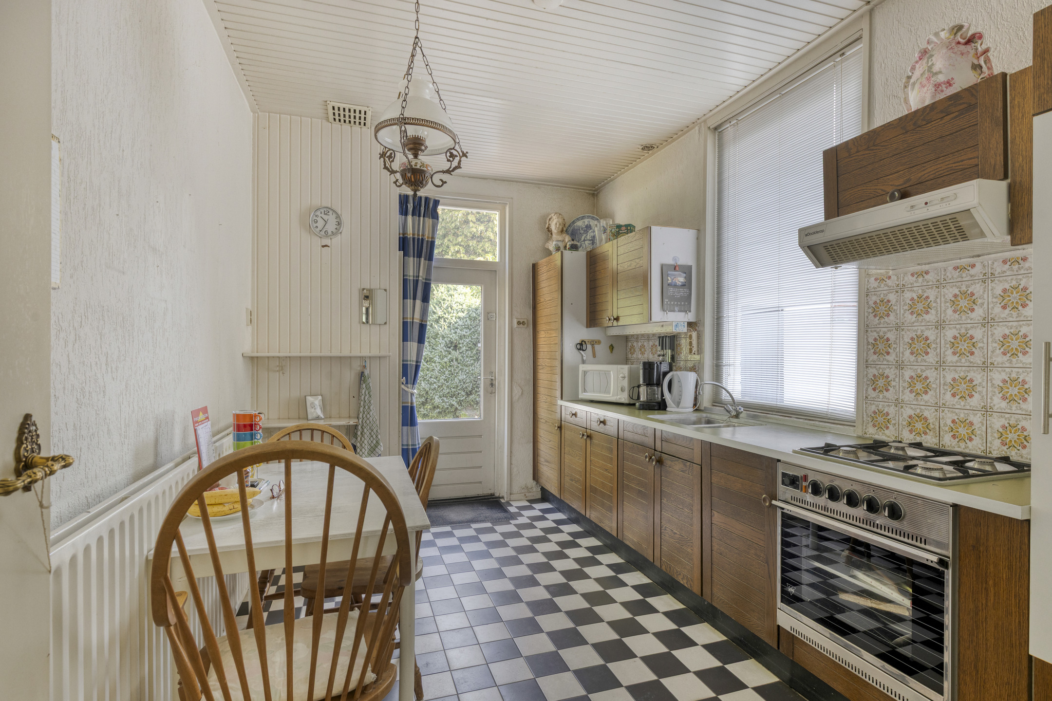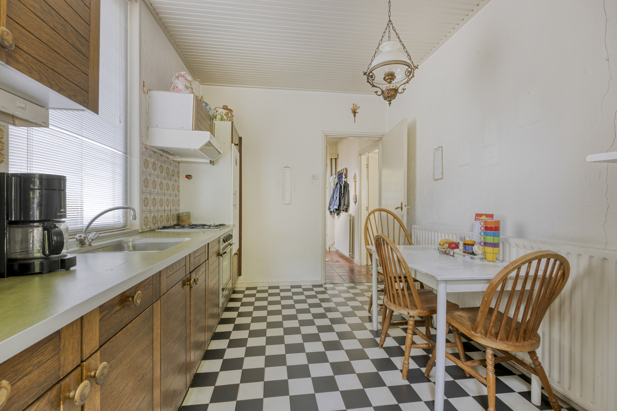 Middels de overdekte entree is er toegang tot de hal, welke in verbinding staat met de meterkast, woonkamer, keuken, kelder, trapopgang en deels betegelde toiletruimte met fonteintje. De doorzonwoonkamer (34m²) is voorzien van een prachtige houten visgraatvloer en biedt ruimte voor een fijne zithoek en een grote eettafel. Aan de achterzijde is er zicht op de tuin middels de glas-in-loodschuifdeuren. De keuken (11m²) is voorzien van een recht interieur en biedt ruimte voor een ontbijttafel. Vanuit de keuken is er tevens toegang tot de tuin en de cv-ruimte met vernieuwde cv-ketel (bouwjaar 2021).